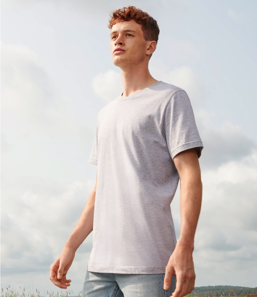 60% cotton/40% polyester. Relaxed comfortable fit. Ribbed collar. Taped neck. Side seams. Twin needle stitching. Tear out label.