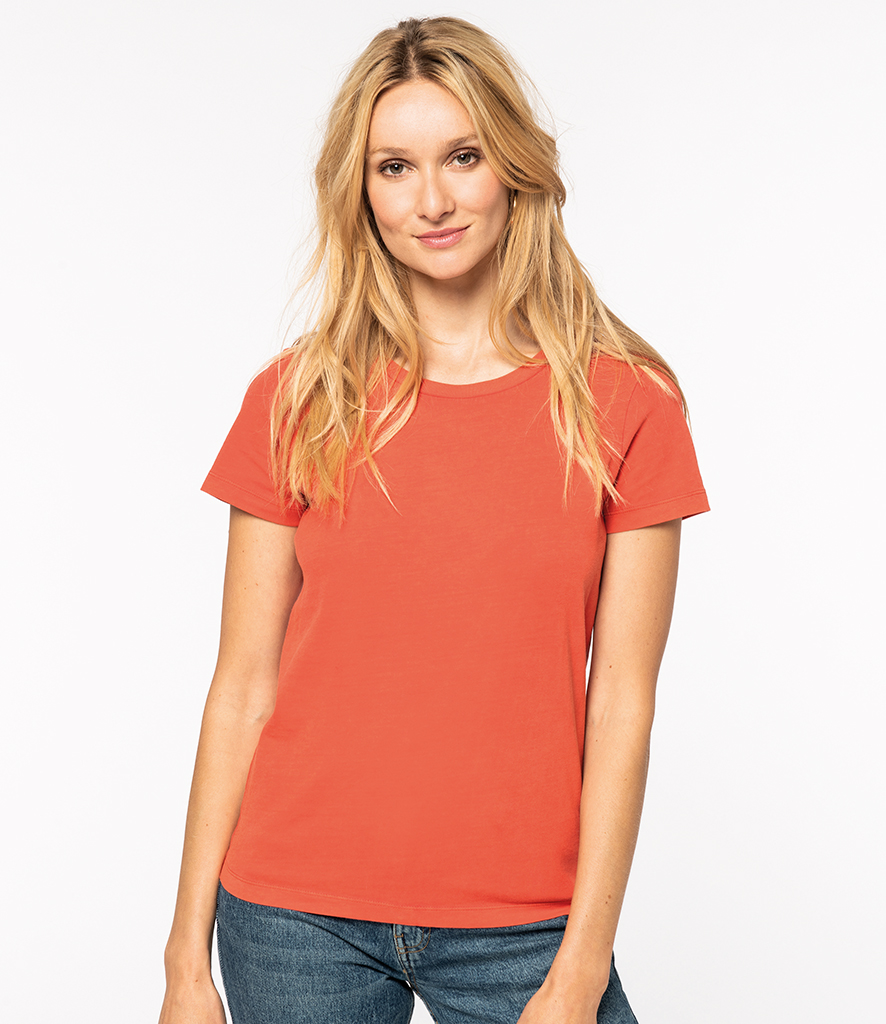 100% organic ringspun combed cotton. Straight fit. 1x1 ribbed collar. Taped neck. Side seams. Twin needle sleeves and hem. Tag free. Garment dyed after assembly, colours may vary slightly. The colour may rub off on contact with light surfaces or clothing.