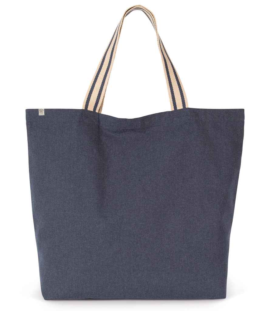 80% recycled cotton/20% recycled polyester. Contrast striped carry/shoulder straps (60cm long). Tag free. Capacity 48 litres. Recycled cotton is made from pre-consumer waste and recycled polyester made from post-consumer waste. Special Order items are non-stock Items ordered from the supplier. These items are non-returnable, and lead times may vary.