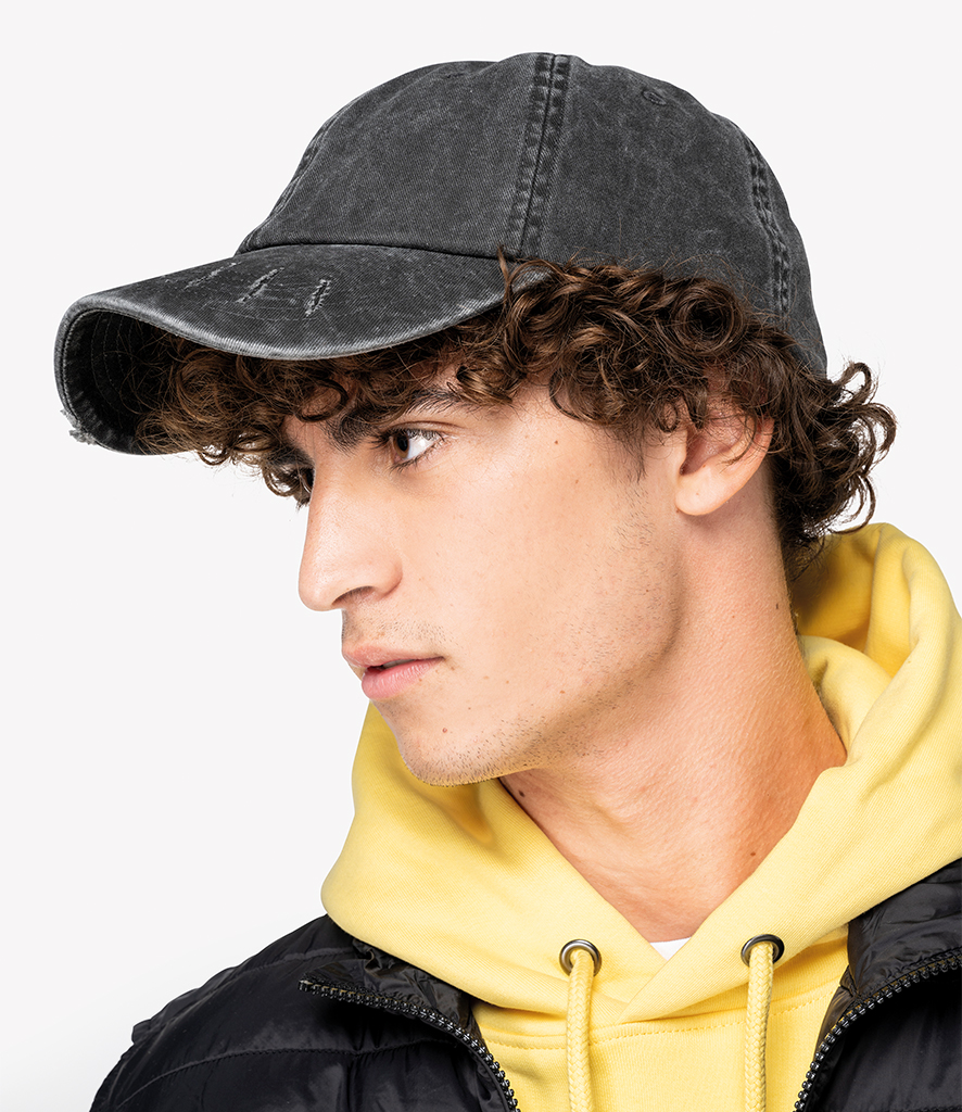 100% organic cotton twill. 6 panel. Faded and used look. Tag free. Garment dyed after assembly, colours may vary slightly.
